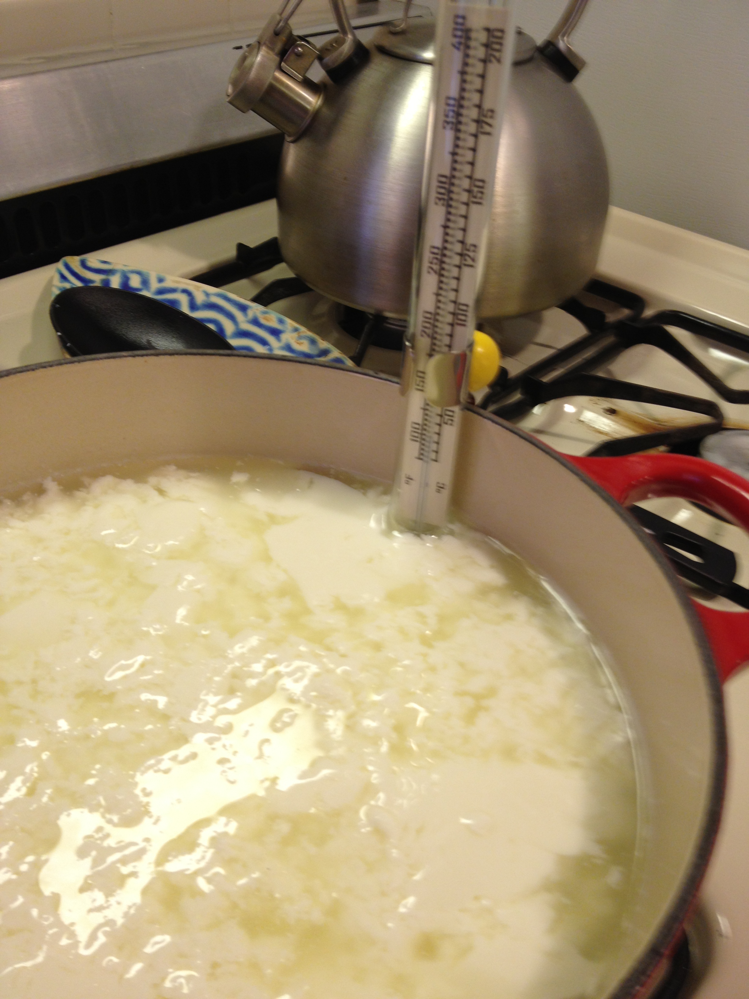 Farm fresh milk, the fresher the milk the better. Some people feel the pasteurized milk that you find in the store won’t work as well when making the cheese so I looked into getting fresh milk from the Union Square Farmer’s Market here in NYC.